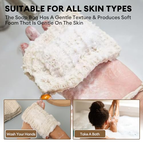- 【ألياف القنب الطبيعية، تقشير لطيف】كيس الصابون هذا مصنوع من ألياف القنب الطبيعية ومثالي للتقشير اللطيف. يمكنها إزالة خلايا الجلد الميتة، مما يجعل بشرتك ناعمة ومنتعشة. ألياف القنب ناعمة ولكنها فعالة، ومناسبة للاستخدام اليومي ولن تسبب تهيجًا.