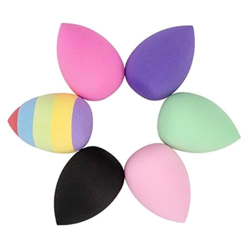 Nali - مجموعة اسفنجة مكياج نالي 6 قطع، اسفنجة مزج لمستحضرات التجميل وكريم الاساس، خالية من العيوب للكريم السائل والبودرة، ناعمة وخالية من اللاتكس، من مادة رينبو