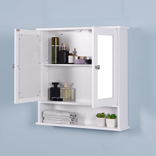 NALLBEIRRAA - وحدة حمام مثبتة على الحائط مع أبواب بمراية، خزانة خشبية معلقة مع أبواب وأرفف من نالبيرا (أبيض8)