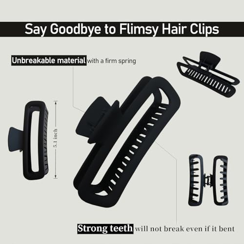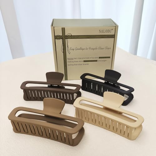 Nalodu - مشابك شعر كبيرة 5 انش، مشابك شعر مربعة غير لامعة مضادة للانزلاق للشعر الكثيف والطويل المجعد، مشابك قوية مستطيلة كبيرة للنساء، 4 قطع