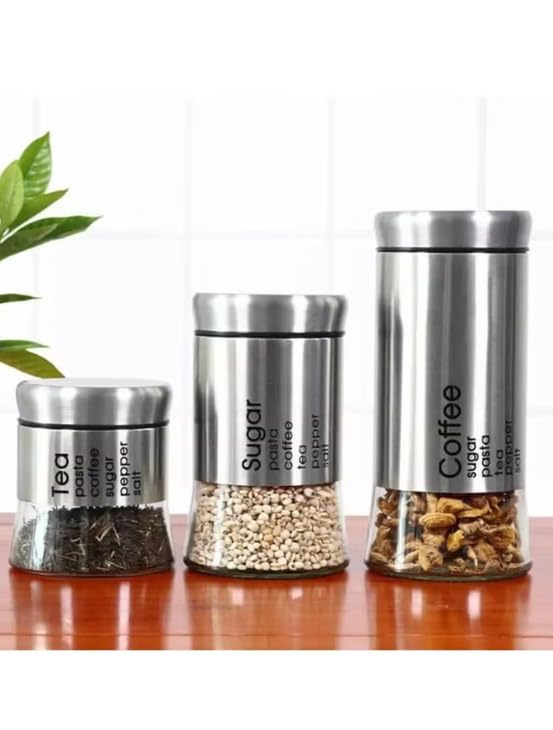 generic - طقم برطمانات توابل 3 قطع من ناما، برطمانات زجاجية ومعدنية للملح والسكر والتوابل