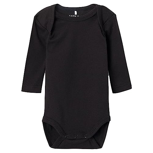 name it - سالوبيت بكباسين للأولاد بأكمام طويلة من نايم ات، لون أسود سادة، (عبوة من قطعتين)