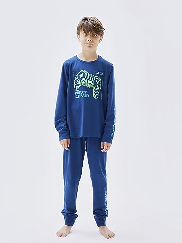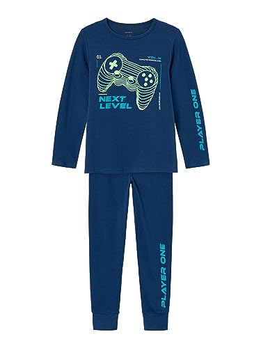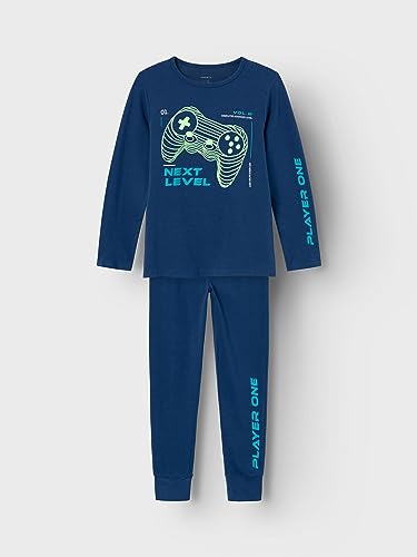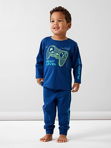 name it - طقم ملابس نوم بأكمام طويلة بتصميم ذراع تحكم للألعاب للأولاد من نيم ات، لون كحلي فاوانيا، (عبوة من قطعتين)