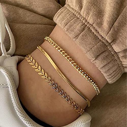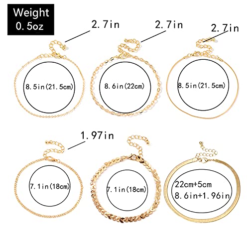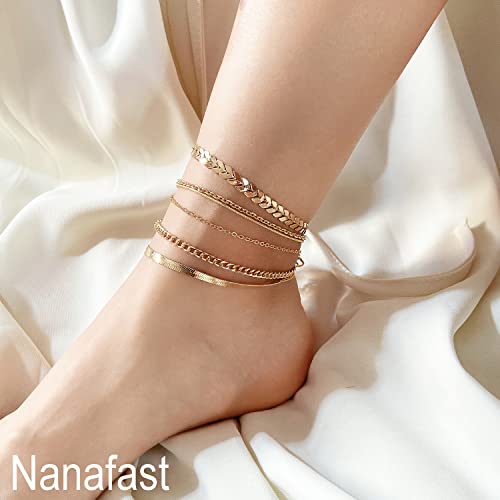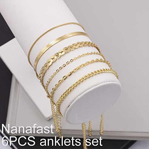 Nanafast - نانافاست مجموعة اساور الكاحل للنساء من 4-6 قطع، خلخال ذهبي بنمط بوهو للشاطئ، مجوهرات قدم قابلة للتعديل للبنات بنمط بسيط للغاية، معدن