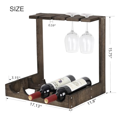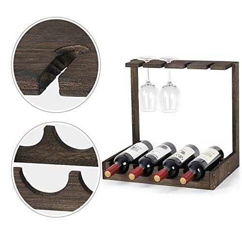 NANANARDOSO - رف تخزين النبيذ من الخشب الريفي مع حامل زجاجي، منظم حامل زجاجات النبيذ لسطح الطاولة وخزانة المطبخ والمخزن من NANANARDOSO (لون بني ريفي، 4 فتحات)