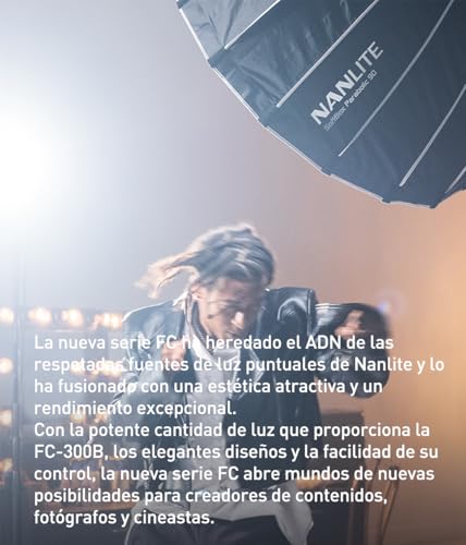 NANLITE - نانلايت مصباح LED FC-300B 350 واط 2700-6500 كلفن 37340 لوكس عند 1 متر - مصباح فيديو احترافي مزدوج اللون للتصوير والبث المباشر والتصوير الفوتوغرافي في الاستوديو