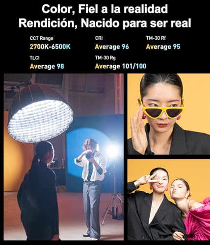 - دقة ألوان فائقة: مع متوسط سي ار اي 96 وTLCI 98، يضمن مصباح LED هذا إعادة إنتاج دقيق للألوان، مما يجعله مثاليًا للتصوير الفوتوغرافي الاحترافي وتصوير الفيديو حيث تكون دقة الألوان أمرًا بالغ الأهمية.