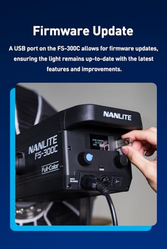 - 【تحديث البرامج الثابتة】يسمح منفذ USB الموجود في FS-300C بتحديثات البرامج الثابتة، مما يضمن بقاء الضوء محدثًا بأحدث الميزات والتحسينات