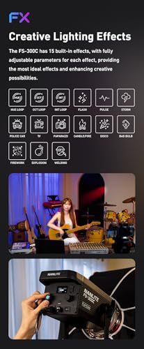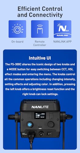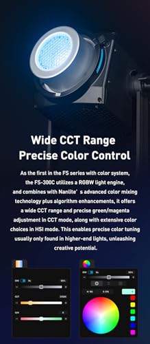 NANLITE - نانلايت مصباح فيديو LED RGB FS-300C بوين ماونت من 2700 كلفن الى 7500 كلفن CCT 34200 لوكس @1 متر يدعم التحكم عن طريق التطبيق لتسجيل الفيديو والبث المباشر