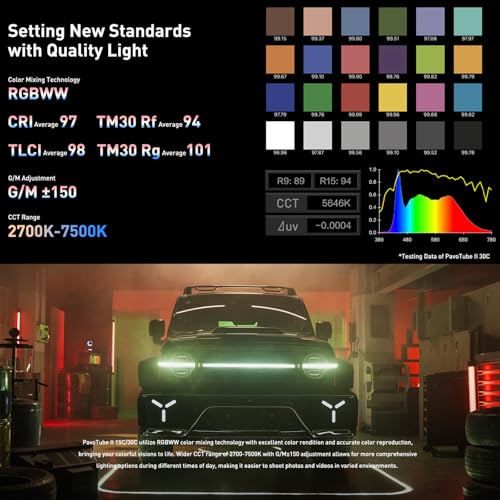 - 🌟【تحكم إبداعي كامل】احصل بسهولة على نتائج جميلة دون إضافة فلاتر بلاستيكية أو جل. تسمح لك أقراص وأزرار بافوتيوب سهلة الاستخدام بضبط درجة الحرارة من الدافئة إلى الباردة (من 6500 كفلن إلى 2700 كلفن) أو ضبط درجة اللون والتشبع في وضع ألوان ار جي بي.