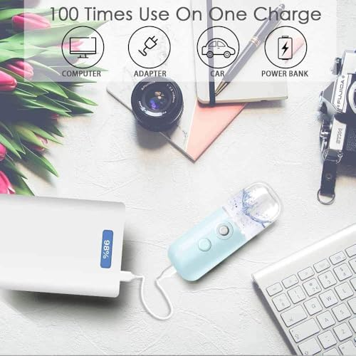 Generic - جهاز بخار نانو للوجه، بخاخ رذاذ صغير محمول قابل لإعادة الشحن عبر منفذ USB، خزان مياه شفاف للترطيب والتروية للوجه والمكياج اليومي والعناية بالبشرة ووصلات الرموش، لون أزرق، سعة 30 مل