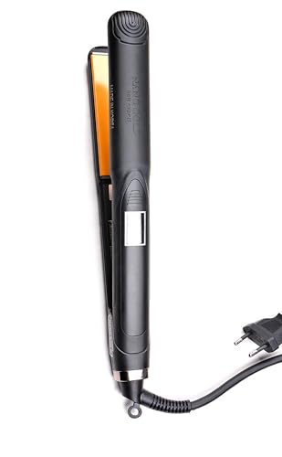 NANO GOLD - مكواة شعر نانو جولد اكس ست مستويات حرارة بطبقتين من الداخل لكبس البروتين ومواد العناية بالشعر مزودة بشاشة رقمية وجراب حراري للاستخدام الشخصي والمهني