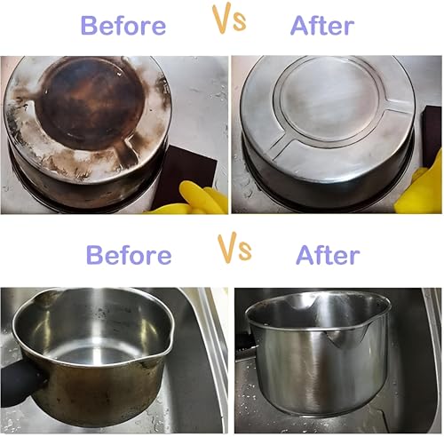 - مجموعة واسعة من الاستخدامات تشمل تنظيف الأواني والمقالي والغلايات وألواح التقطيع والحواف والأدوات الاحترافية؛ مناسبة للاستخدام في المطبخ أو الحمام أو المرآب أو المناطق الخارجية؛ تساعد على إزالة الرواسب واستعادة اللمعان؛ لا تتمدد على الأواني وتجنب استخدام القوة المفرطة.