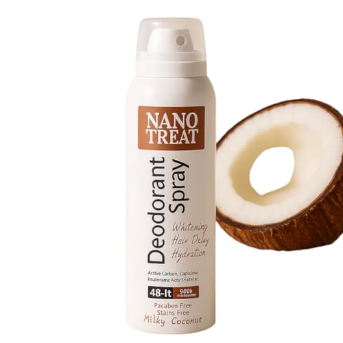 NANO TREAT - مزيل عرق سائل من نانو تريت برائحة جوز الهند للجنسين، سعة 150 مل، مع حماية 24 ساعة وتقليل نمو الشعر