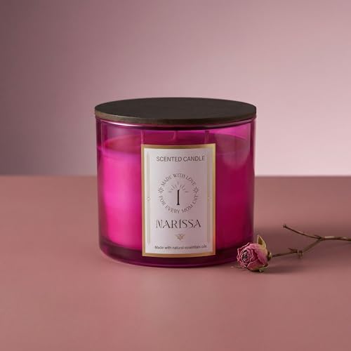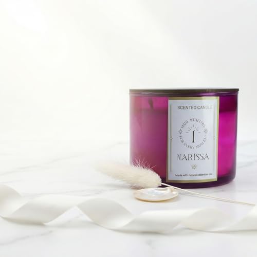 Narissa - شمعة إيليت المعطرة الفاخرة من ناريسا - 500 جرام - 3 فتيل - شمع صويا طبيعي 100% - تصميم زجاجي موف فاخر - زيت عطري 12% فواح يدوم طويلاً للاسترخاء والرفاهية (دارك كيس)