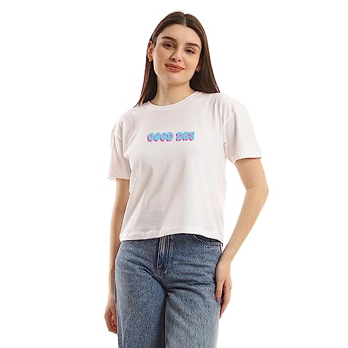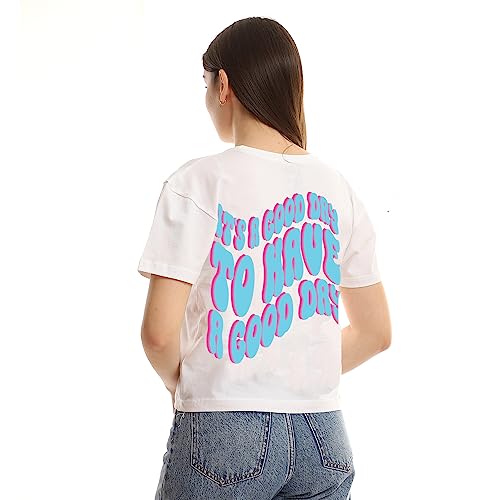 Nas Trends - تيشرت قصير بأكمام قصيرة للجنسين بطبعة عبارة (Good Day) من ناس تريندز