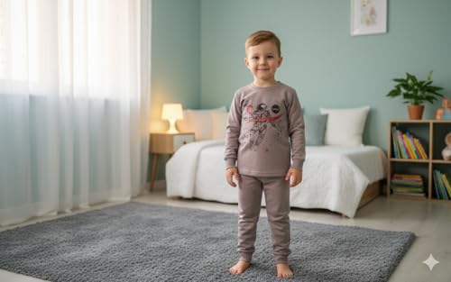 Generic - طقم بيجامة فضاء للاطفال من ناسا، قطن رمادي باكمام طويلة وطباعة رائد فضاء، ملابس نوم من قطعتين للاطفال