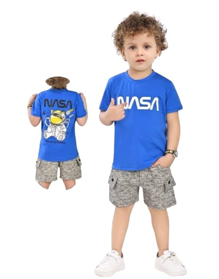 Generic - تي شيرت للاطفال بشعار ناسا، قطن، ازرق ملكي، مع طباعة رائد فضاء (ازرق، 4)