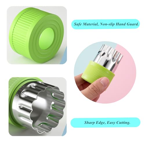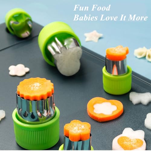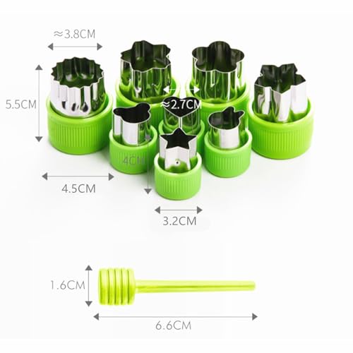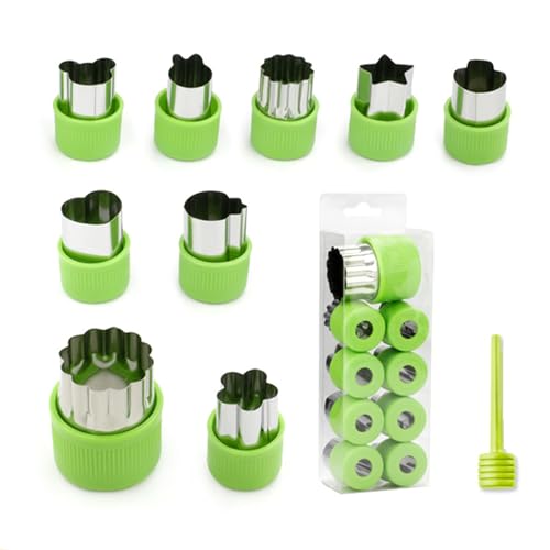 NASHRIO - 9 قطع بأشكال ومقاسات مختلفة من الفولاذ المقاوم للصدأ مع غطاء بلاستيكي من ناشريو، قوالب طوابع صغيرة للبسكويت والفواكه والخضروات، مجموعة أشكال لخبز الأطفال (أخضر)