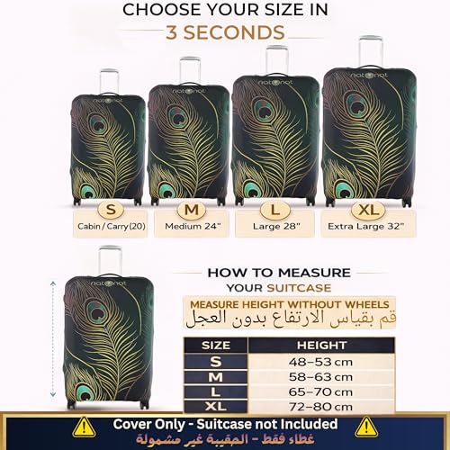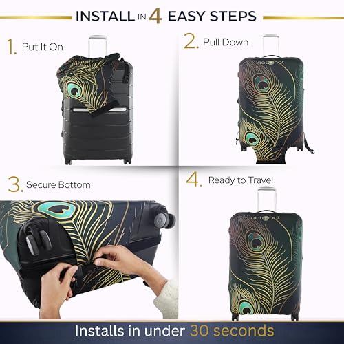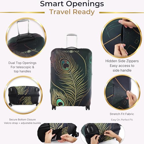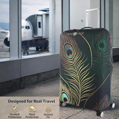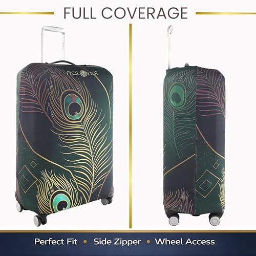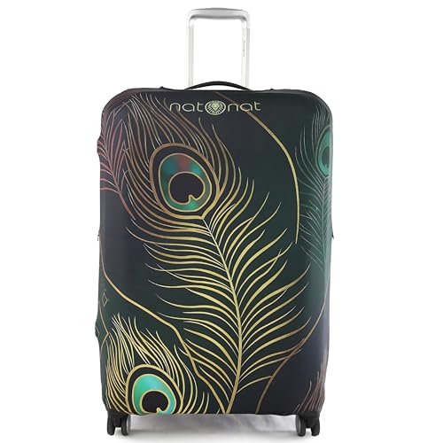 natOnat - غطاء واقي لحقائب السفر من ناتونات - غطاء حقيبة - قابل للتمدد وقابل للغسل من السباندكس والبوليستر - يحمي من الاوساخ والخدوش - تصميم طاووس - يناسب ارتفاع 48-53 سم (مقاس S)