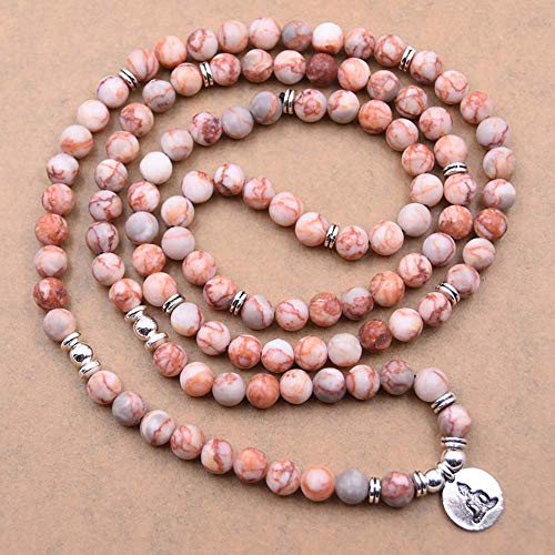 Self-Discovery - مجوهرات خرز مالا للتامل من 108 خرزة تصلح كعقد وسوار مع دلاية يوجا بلون بني ناتشرال