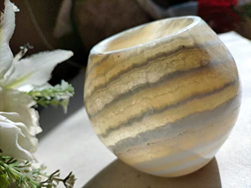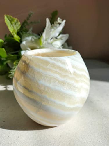 Generic - حامل شموع باليستي ابيض طبيعي رائع من المرمر الطبيعي، حجم كبير وفريد من نوعه للديكور الداخلي، اضاءة غير مباشرة، مزهرية اضاءة حميمة حميمة، هدية رائعة