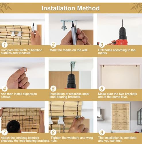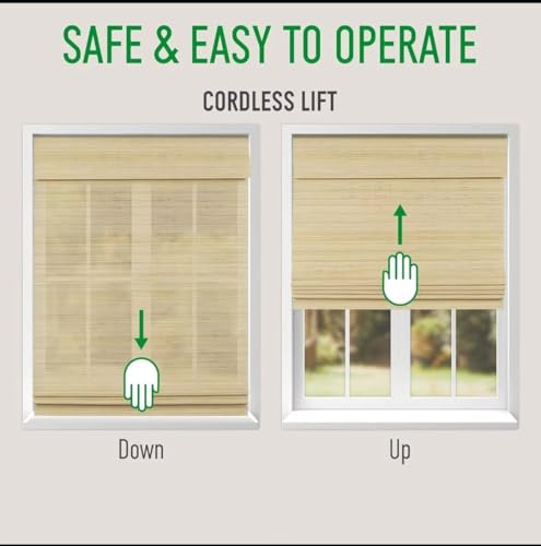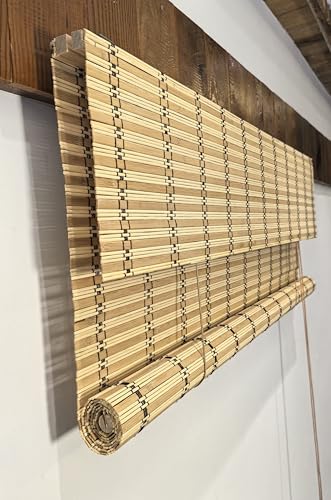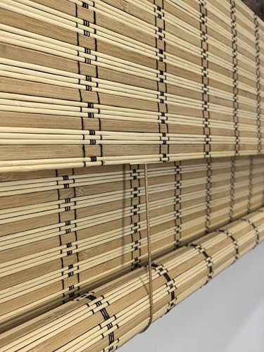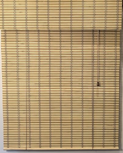Generic - ستائر خيرزان من الخيزران الطبيعي، (عرض: 90 سم × الارتفاع:110 سم) لون اساسي بيج مع الوان متدخلة سهلة التركيب مرفق معها ادوات