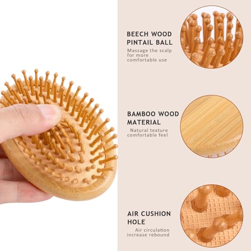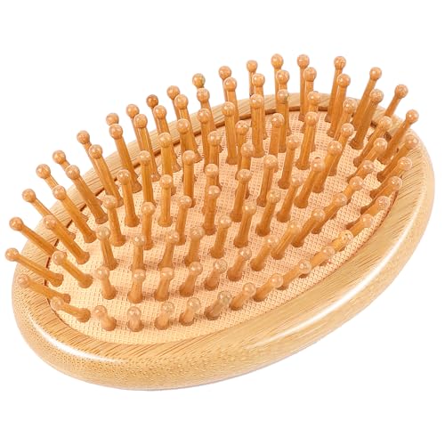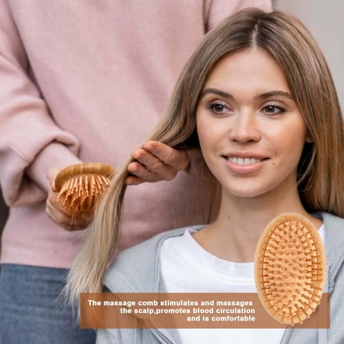 Styquenzer - فرشاة شعر طبيعية من البامبو، مدلك فروة الرأس الخشبي لتعزيز نمو الشعر، فرشاة شعر محمولة للسفر مع دبابيس خشبية مستديرة مضادة للكهرباء الساكنة لفك تشابك الشعر للنساء والرجال لجميع أنواع الشعر، بدون مقبض