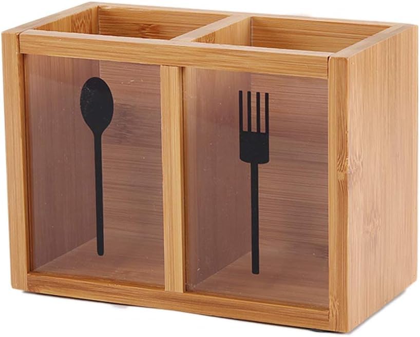 Generic - منظم وصفاية معالق خشب بامبو طبيعي – مقاوم للماء – لتخزين المعالق والشوك والسكاكين – تصميم عملي أنيق بمستويين (2 خان)ka