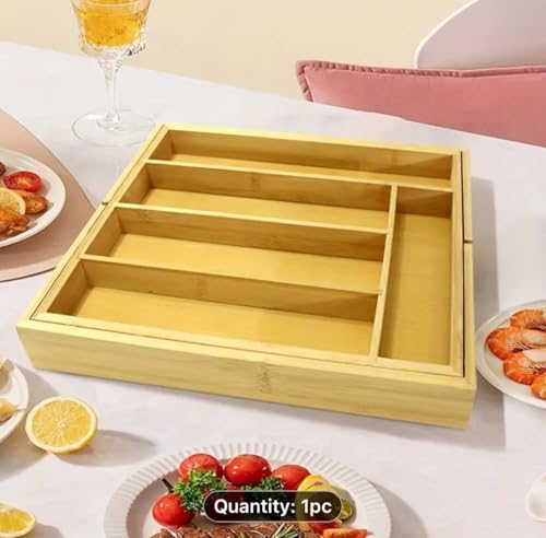 Generic - منظم ادراج ملاعق وسكاكين خشبية من الخيزران الطبيعي 7 مساحات تخزين لتخزين ادوات المائدة - تصميم انيق وسهل التنظيف - مقاس 42 × 35 سم يناسب جميع الادراج - منظم ادراج ادوات المائدة من الخيزران