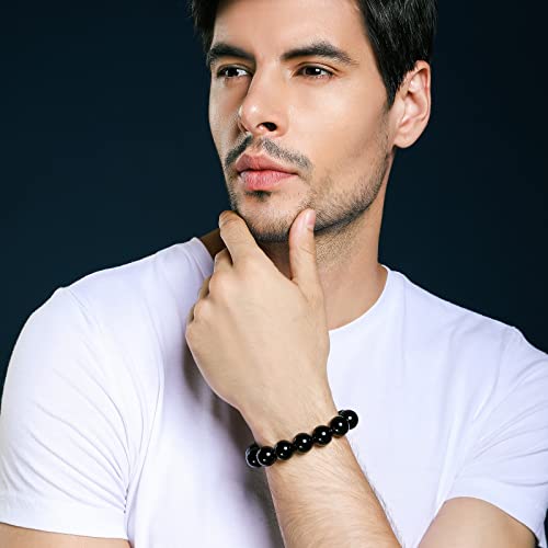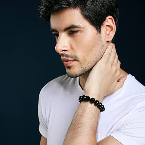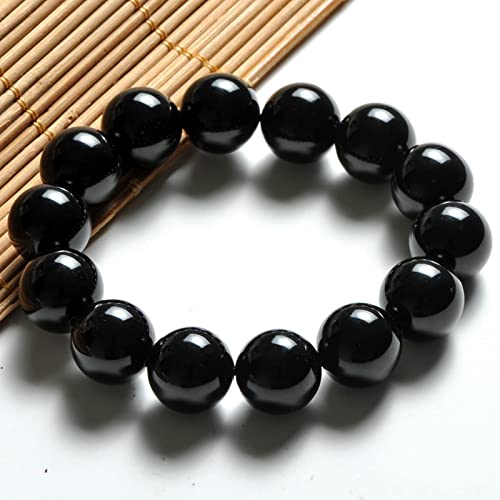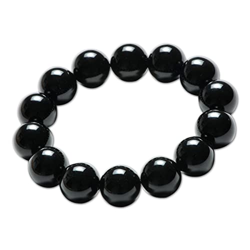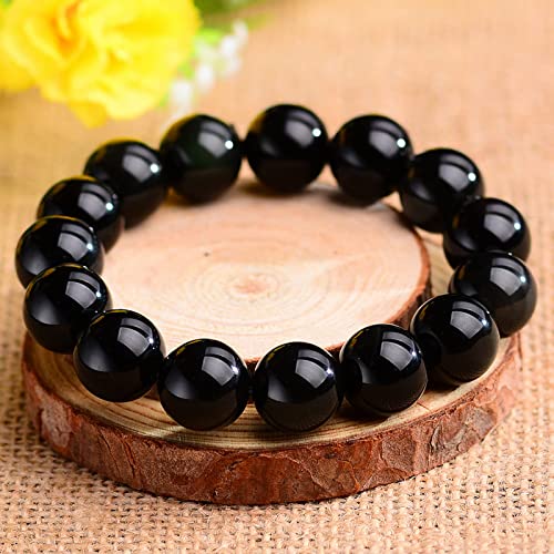 generic - سوار قابل للتمدد من العقيق الاسود الطبيعي بكريستالات علاجية من العقيق الاحمر للنساء، مجوهرات الجمال والسعادة والثروة (14 ملم)، حجر، عقيق