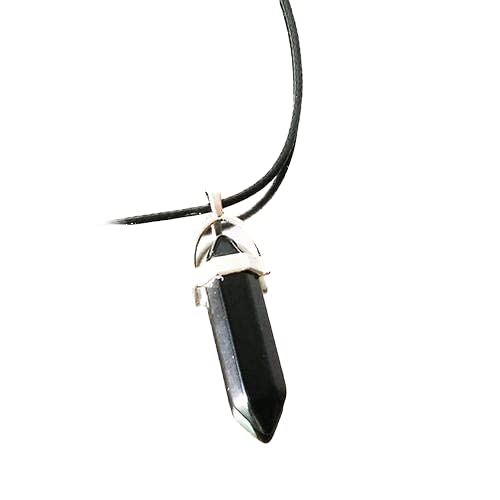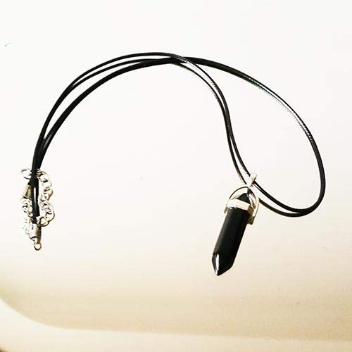 Other - سلسال بقلادة متدلية بتصميم جوهرة كوارتز من حجر اونيكس العقيق طبيعي اسود، مطلية بالفضة، للجنسين