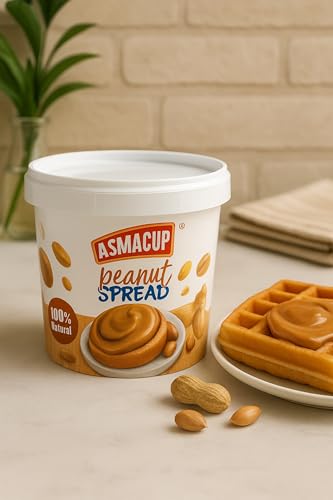 asmacup - زبدة الفول السوداني الكريمية الطبيعية | خالية من زيت النخيل | بروتين عالي | جودة ممتازة | وجبة خفيفة صحية للافطار واللياقة البدنية، 900 جرام