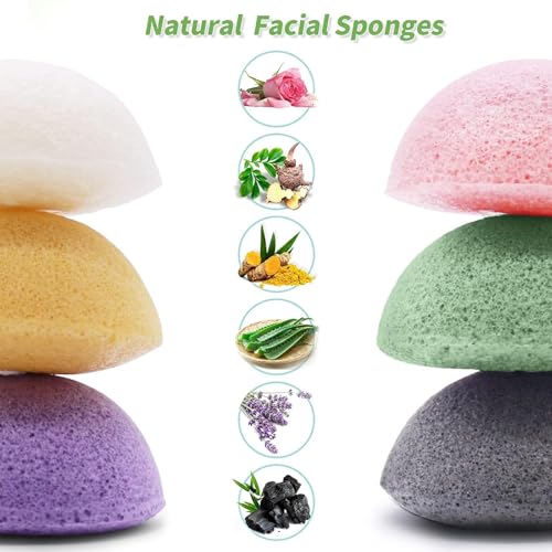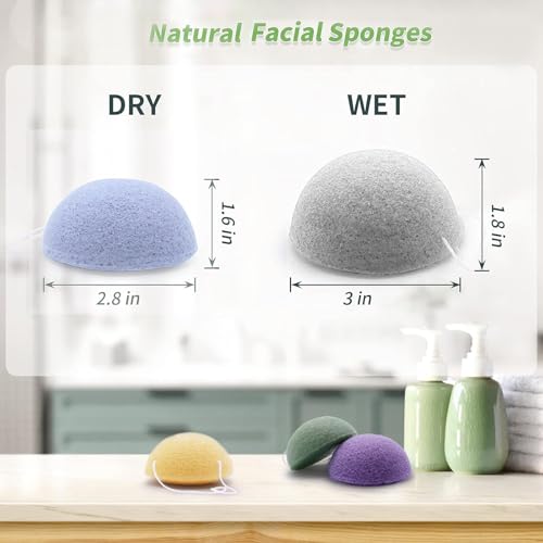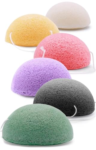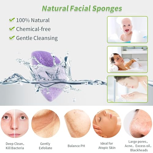 Generic - اسفنجة وجه طبيعية - فرشاة تقشير لطيفة للبشرة الحساسة وامنة على البشرة المعرضة لحب الشباب، مثالية للغسيل اليومي ومزيل المكياج، قطعة واحدة، الوان متنوعة
