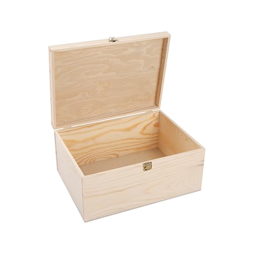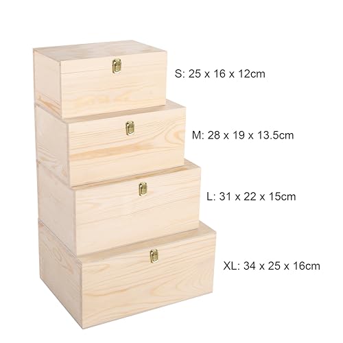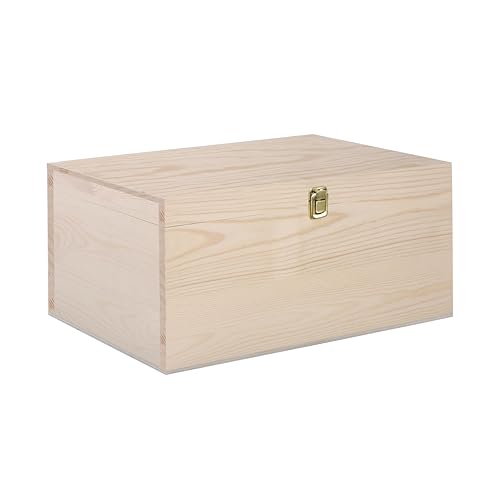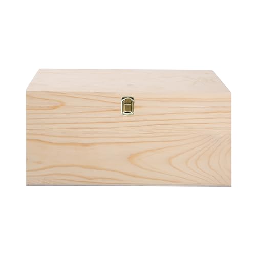 green leaves - صندوق تخزين خشبي بلمسة نهائية طبيعية يمكنك تركيبه بنفسك مع غطاء مفصلي ومشبك إغلاق (مقاس صغير)