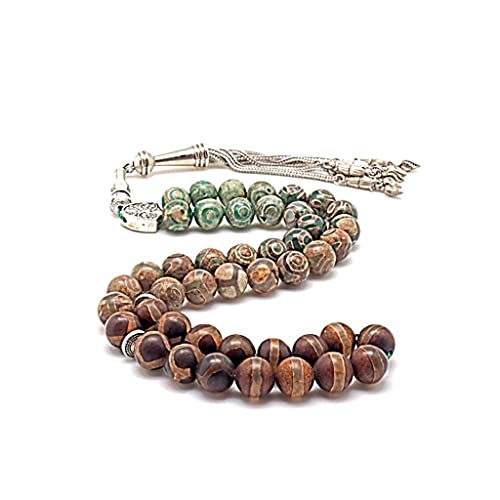 Qawafl - سبحة حجر كريم طبيعي عقيق التبت - Ag0016، للجنسين