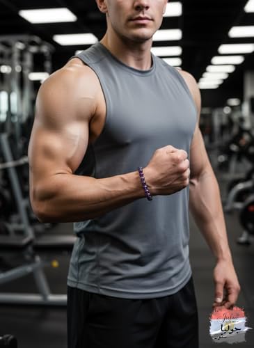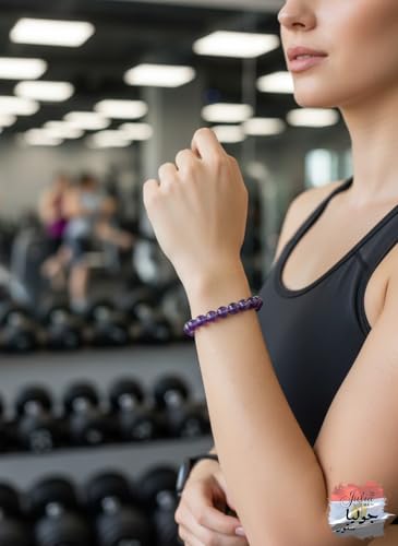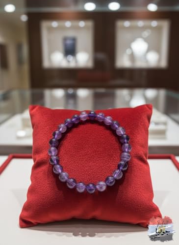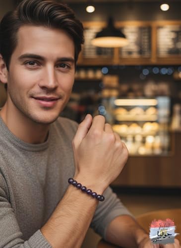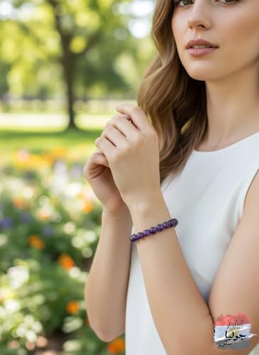 Julia Store - احجار كريمة طبيعية شبه ثمينة من اللازورد والعقيق الاحمر والملكيت واليشم وعين النمر والعقيق السليماني والجمشت 8 ملم، سوار خرز دائري قابل للتمدد 7 انش للجنسين (جمشت)