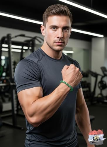 Julia Store - احجار كريمة طبيعية شبه ثمينة من اللازورد والعقيق الاحمر والملكيت واليشم وعين النمر والعقيق السليماني والجمشت 8 ملم، سوار خرز دائري قابل للتمدد 7 انش للجنسين (يشم)
