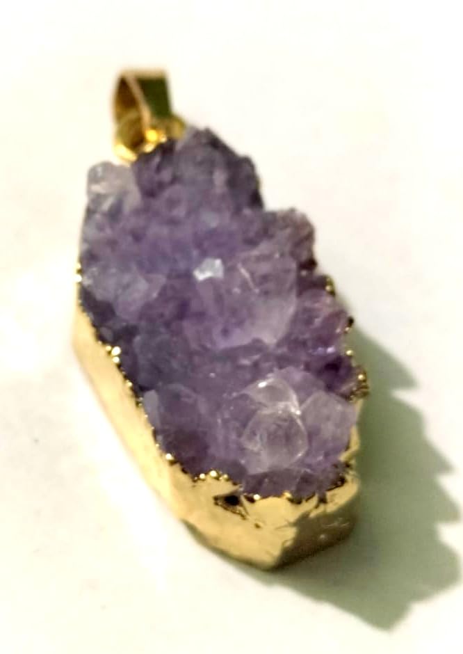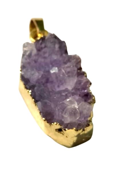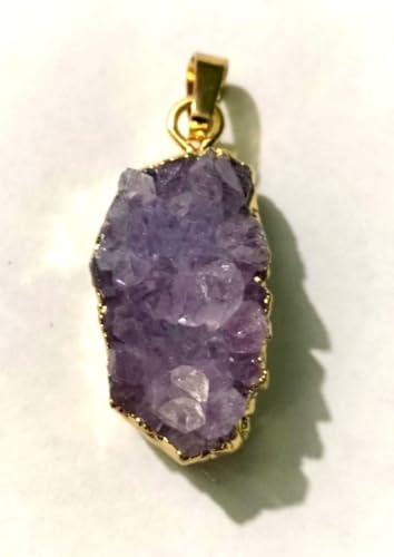Generic - احجار كريمة طبيعية دلاية سلسلة حجر الأماثيست جمشت البنفسجي الطبيعي الرائع - خام طبيعي باطار ذهبي شكل مميز مناسب للجنسين طبيعي اصلي تماما - رائع لسحب الطاقة السلبية و رفع الحالة المعنوية (3)