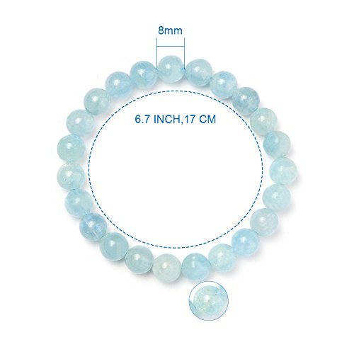 generic - سوار من الاحجار الكريمة الطبيعية بلون ازرق اوشن قابل للتمدد 8 ملم، خرز دائري حوالي 7 انش للجنسين، مقاس واحد، اكوامارين
