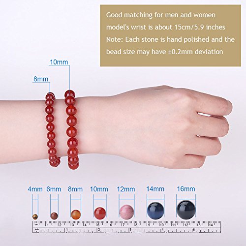 generic - سوار من الاحجار الكريمة الطبيعية الاصلية قابل للتمدد 8 ملم خرز دائري حوالي 7 انش للجنسين من العقيق الاحمر، مقاس واحد، حجر العقيق الاحمر