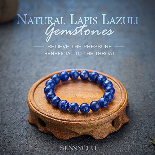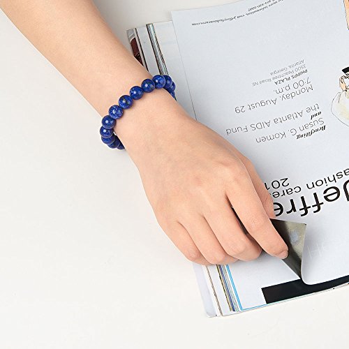 generic - سوار من الاحجار الكريمة الطبيعية الاصلية من اللازورد قابل للتمدد 8 ملم خرز دائري حوالي 7 انش للجنسين من اللازورد واللازورد - ستانلس ستيل