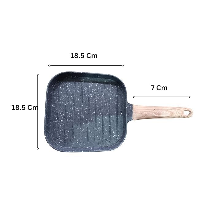 Generic - جريل جرانيت طبيعي بمقبض خشبي عالي الجودة، مقاس 18 سم - سطح مانع للالتصاق للشوي الصحي بلا زيت | مثالي للمطبخ والشواء والبيتزا
