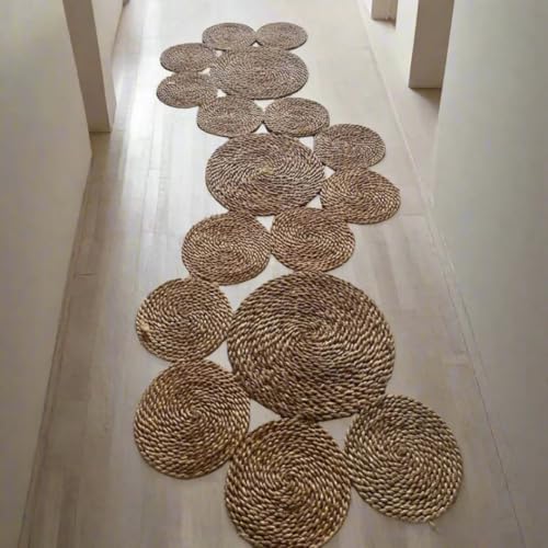 Generic - سجادة ممر دائرية من نسيج الحلفاء الطبيعي المحبوك، تصميم حلزوني مصنوع يدويًا، 210 × 55 سم