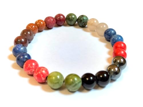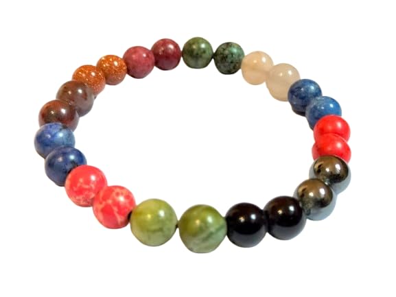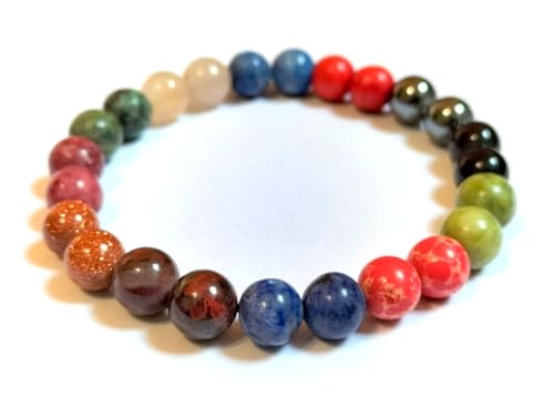 Generic - سوار شاكرا علاجي مصنوع يدويا من الاحجار الطبيعية متعدد الالوان ومتعدد الاحجار، خرز من الاحجار الطبيعية، تصميم للجنسين