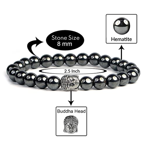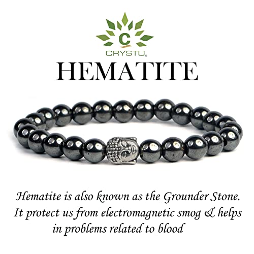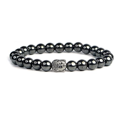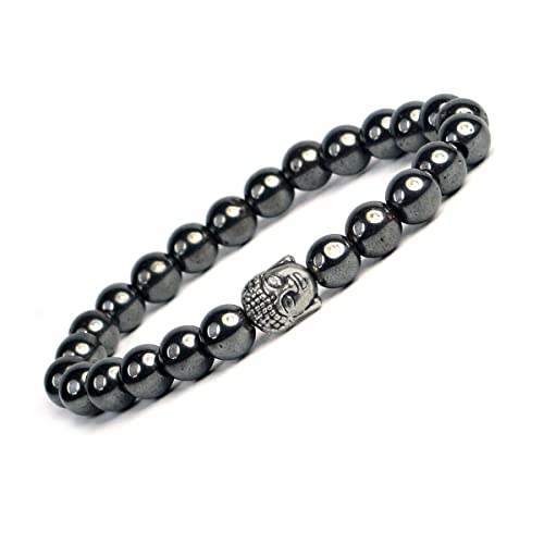 generic - سوار من الهيماتايت الطبيعي مع حجر كريستال براس بوذا 8 ملم، سوار خرز دائري للشفاء بالريكي وحجر الشفاء الكريستالي (اللون: متعدد)، احجار كريستال طبيعية، حجر هيماتيت