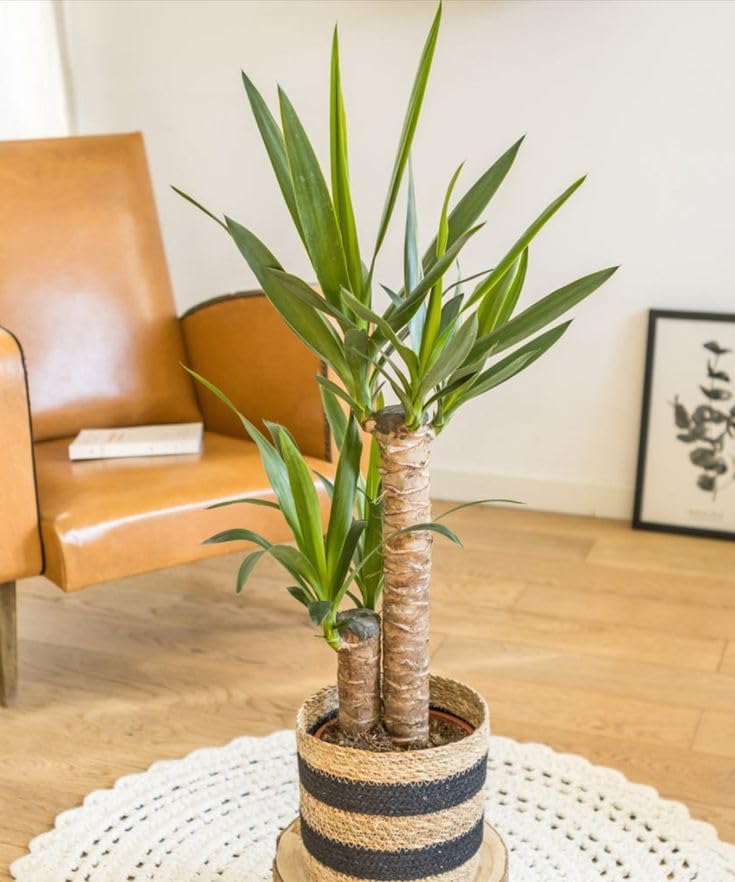 - نبات داخلي: يوكا طبيعي مميز بأوراق خضراء كثيفة وجذع خشبي قوي، مثالي لتزيين المساحات الداخلية