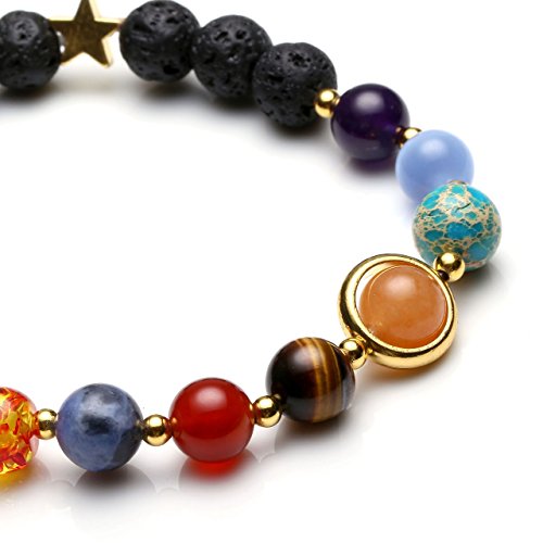 generic - سوار خرز لافا روك طبيعي للتخلص من القلق، حجر شاكرا كريستال للشفاء والنظام الشمسي والكون والمجرة والكواكب التسعة والنجوم، سوار للنساء والرجال - متعدد الالوان