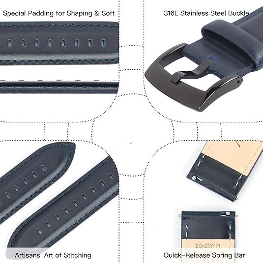 Smart Stuff - سوار قياسي من سمارت ستاف متوافق مع ساعات هواوي GT و سامسونج جالاكسي و شاومي و امازفت، مصنوع من الجلد الطبيعي بلون بني للجنسين مقاس 22 ملم
