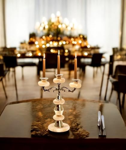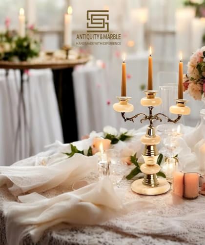 Generic - شمعدان بثلاث شمعات من الرخام الطبيعي والنحاس الفاخر قطعة فاخرة تجمع بين الفن الكلاسيكي والأناقة العصرية لإثراء ديكور منزلك.